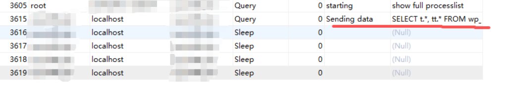 之后 在 MySQL 执行 show full processlist 看下数据库到底在搞什么?