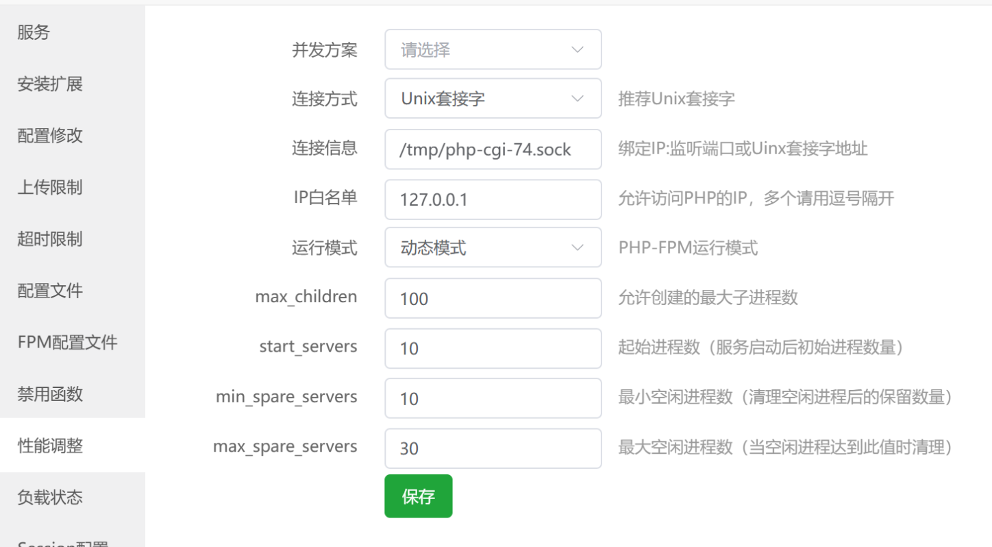 他的网站 PHP 配置文件是默认设置,服务器内存 8 G,我建议将 max_children 设置成 40。