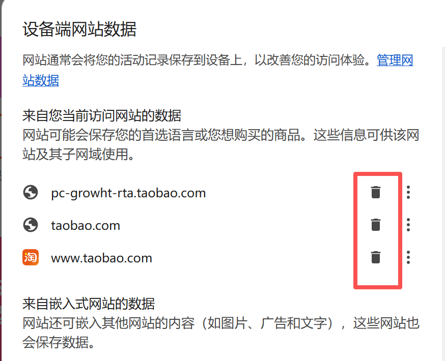 点击网址右侧的垃圾桶图标,就可以把指定网站的数据全部清除了,很方便,亲测好用。